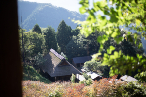 この朝、僕たちはJR武蔵五日市駅から路線バスに揺られて、檜原村の藤倉集落へと向かった。築300年を超える小林家住宅への玄関口となる藤倉のバス停までは、約50分の道のりである。市街地から林のなかに民家が点在する山道となり、雲ひとつない青空が急峻な山の斜面の向こうへとほとんど隠れてしまった。