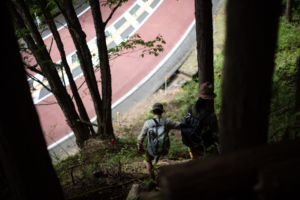 僕たちの前を歩いていた4人組の登山者は、充実した一日を過ごした様子であった。話しかけると笹平という集落から浅間尾根まで登って、僕たちと同じ道を辿って降りてきたところだという。無事に山登りを終えた安堵感と、街に降りてきた高揚感からか終始笑顔だ。