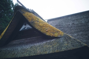 130年以上前に立てられた茅葺き屋根の建物内部は、浅葱色(あさぎいろ)という青みを帯びた漆喰の壁で作られている。これは真っ白な石灰に、顔料を混ぜることで青みをつけたものだという。