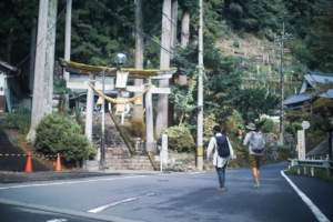 お汁粉をいただいたあとで東馬場御師住宅を見学すると、御岳の御師町から日の出山方面へと向かった。30分ほど歩いたところに分岐点があり、僕たちは右手へと向かい養沢の沢沿いの道へとくだった。