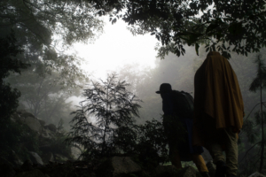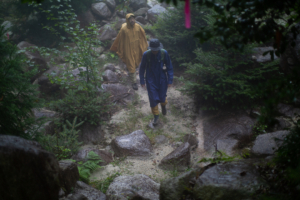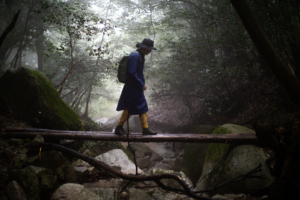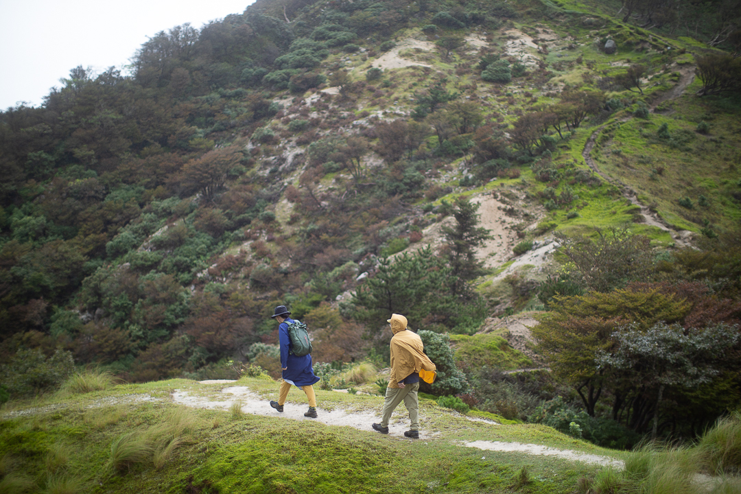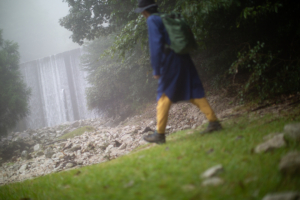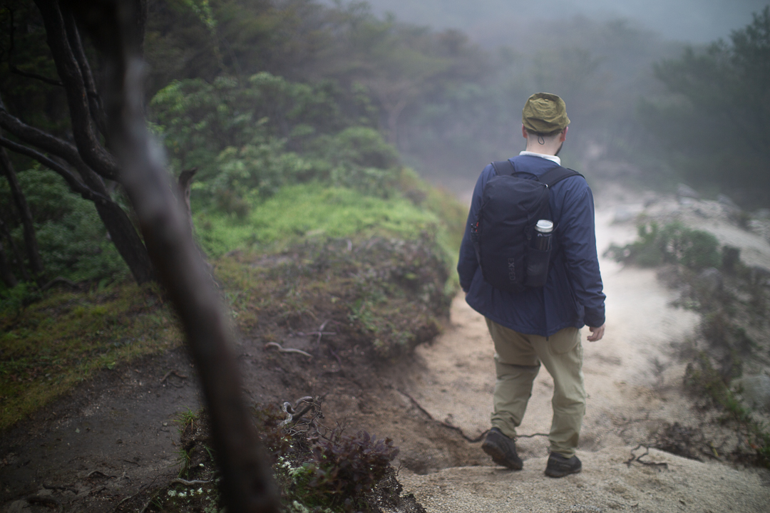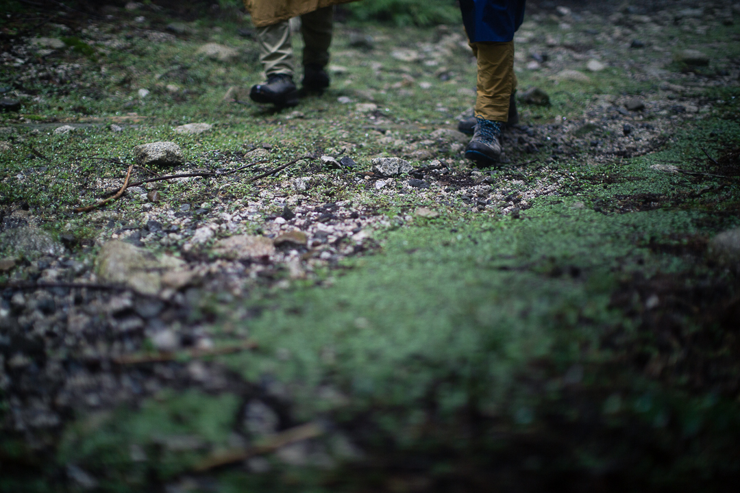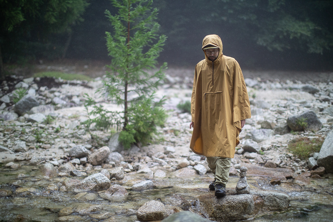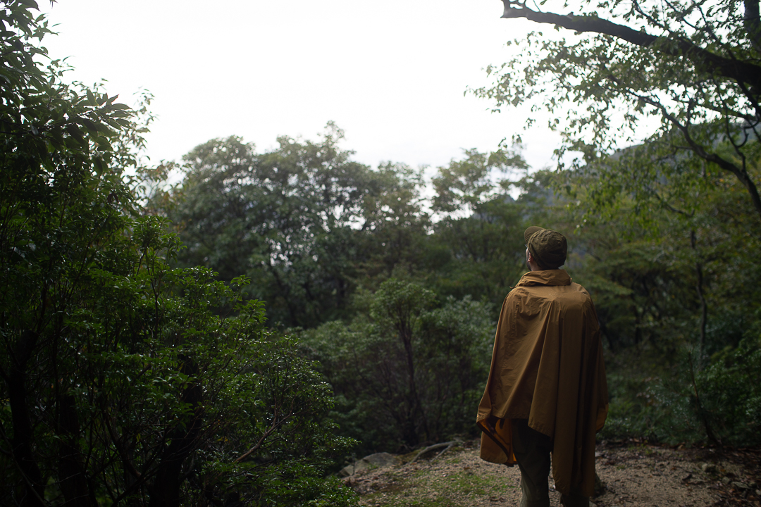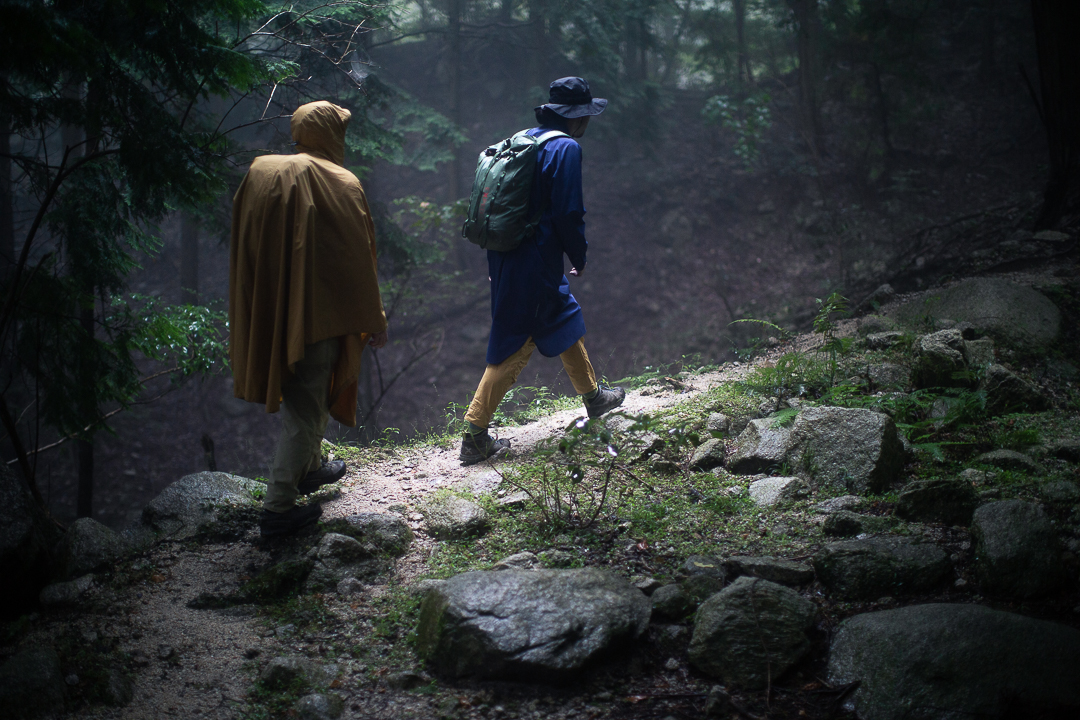 天候は、あいにくの雨模様である。バックパックに入れた荷物が濡れてしまわないように、しっかりと雨対策を行い、雨具のポンチョを羽織うことにした。足元も、しっかりと整えて泥汚れや害虫が入り込むのを防いだ。