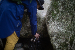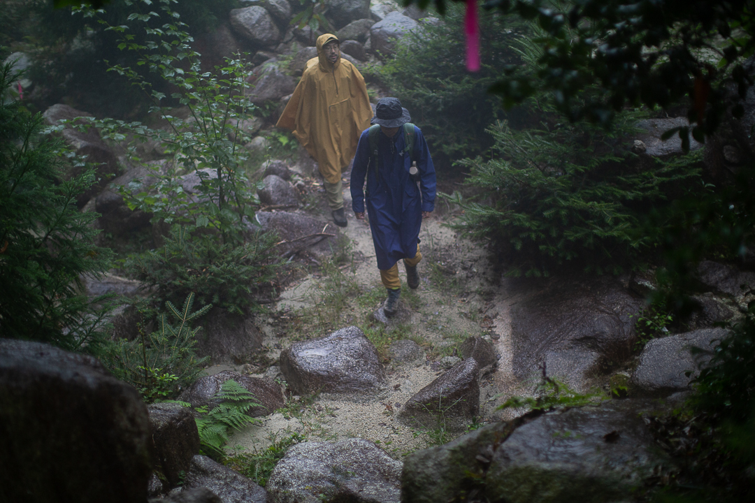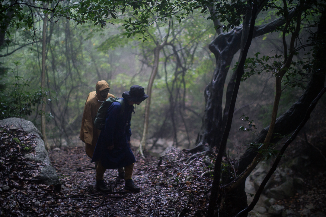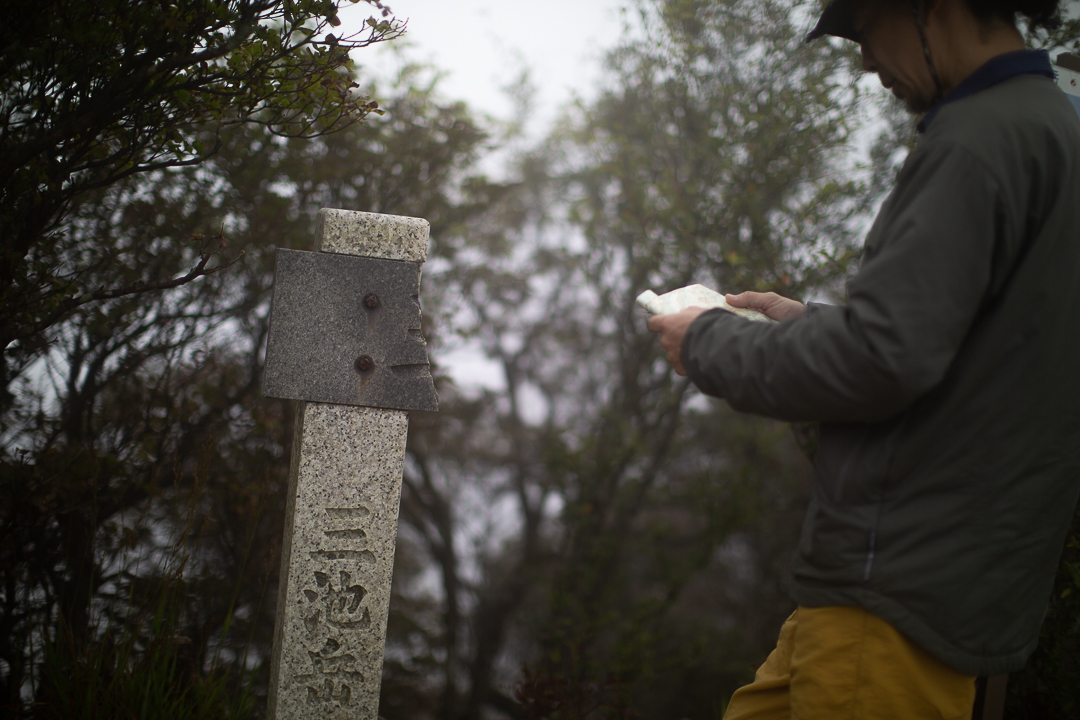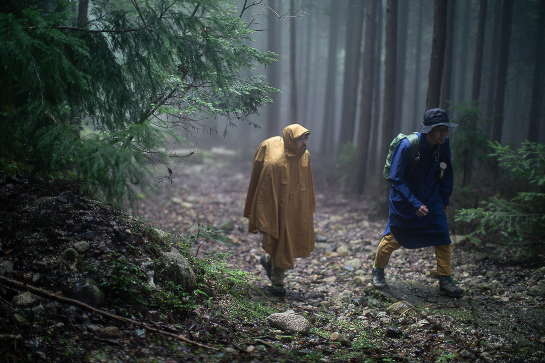 さらに、そのうえから防虫スプレーを入念に拭きかける。鈴鹿山脈は、ヒル被害で悪名高い。今日のような雨が降っている日には、とくに用心が必要だと、地元の登山者たちは声を揃える。僕たちが持ってきた防虫スプレーも、四日市にある企業がヒル専用に作ったものなのだ。