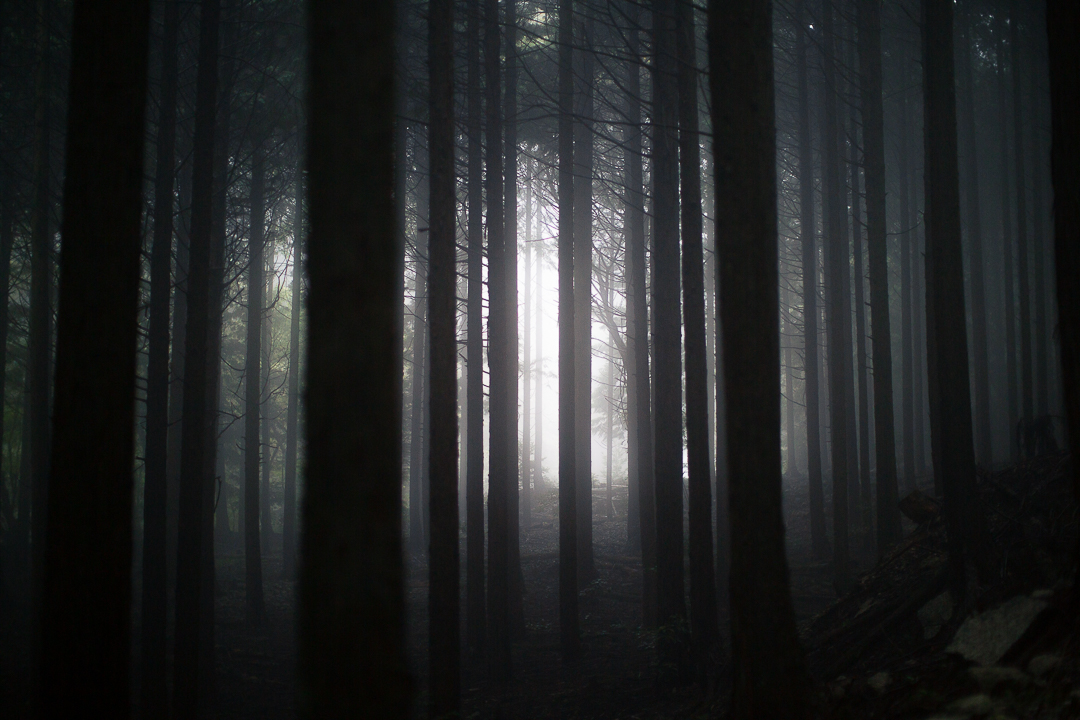 中峠に到着すると雨脚が強まってきて、風を遮ることができる森のなかへと逃げるようにして下っていった。尾根道をそのまま進んで釈迦ヶ岳(標高約1091.9m)の山頂を踏んでから、岩ヶ峰尾根を辿っていったり、あるいは先ほど歩いていった三池岳から、そのまま駐車場まで下る道も歩いてみたかった。しかしながら、こんな日は安全策を選ぶのが賢明であろう。
