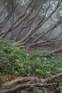 灌木の枝葉は、左右に激しく揺られて、ビュービューと風を切る音が聞こえている。一帯には、背丈よりも少し高いくらいの樹木が育つぐらいで、その幹も斜めに伸びている。
