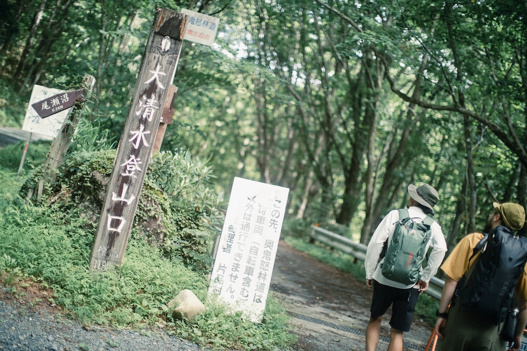 尾瀬沼へ向かうため僕たちが選んだ登山口は、群馬県側の大清水である。一般車両の進入を防ぐための車止めを抜けて、ほかの登山者たちが向かう林道から分岐点を右手へと進む。案内板には、「奥鬼怒林道」と掲げられており、そこからまもなくすると会津沼田街道の面影を残す旧道を見つけることができる。