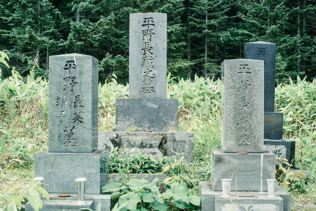 途中、大江湿原にある平野家の墓に立ち寄ると、類い希な自然を残してくれた長蔵に感謝の念を伝えた。彼の横には、平野長英・靖子夫妻、平野長靖と、それぞれの墓が置かれている。僕が知るなかで、ここはもっとも美しい墓地である。
