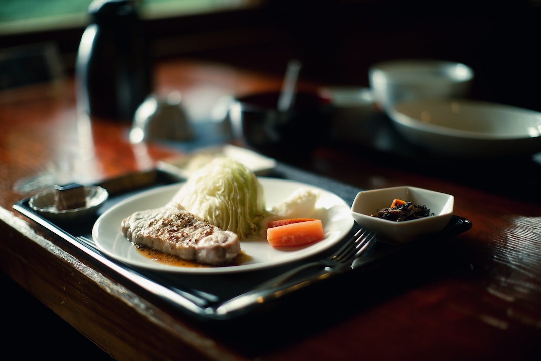 夕食の時間である。僕たちが部屋の番号が掲げられたテーブルに腰掛けると、山小屋で働くスタッフと一緒になって平野家の子供たちが大忙しの厨房から料理を持ってきてくれた。できあがったばかりのポークソテーは、まさに絶品であった。