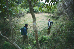 山道が少し盛り上がった地形の向こう側を覗いてみると、稲科の植物でいっぱいになった広場があった。まもなく本村集落に到着するという頃であった。そのため、もう隠田を見つけることはできないのであろう。そう思った矢先の出来事であるから、僕たちは大いに喜んだ。