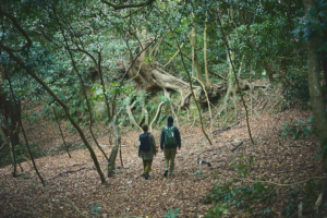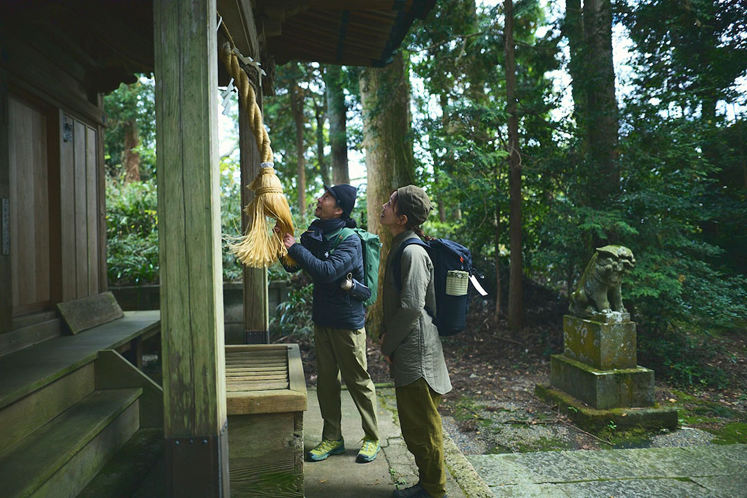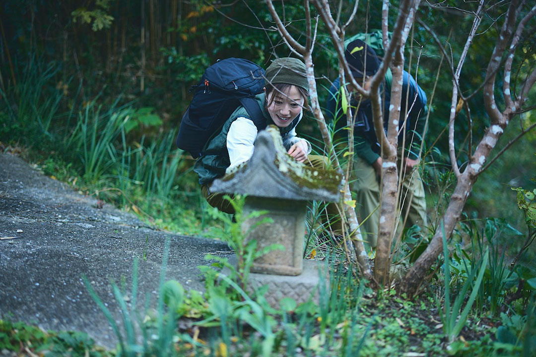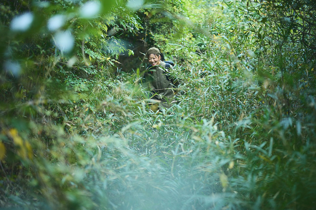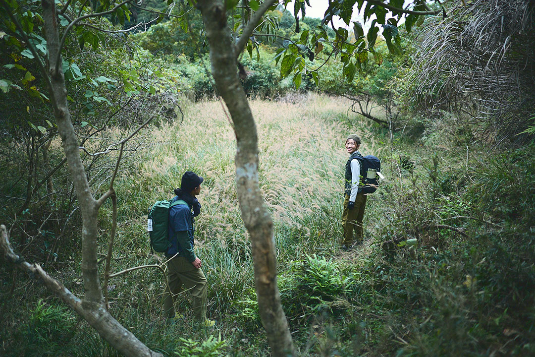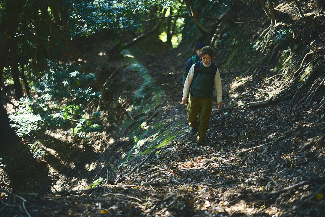 そこからは、ほとんど踏み跡のない森のなかを、四苦八苦しながら本村集落へと下っていく。道中には、歌川広重が「不二三十六景」で描いた鹿野山鳥居崎という名勝地もある。しかし、江戸時代を代表する浮世絵師の心を打った景色は、いま笹薮に覆われてしまって見ることはできなくなっていた。