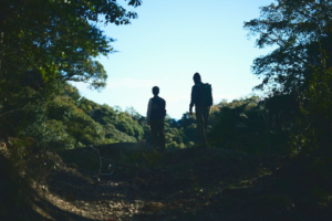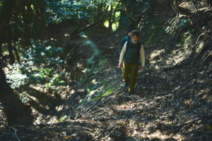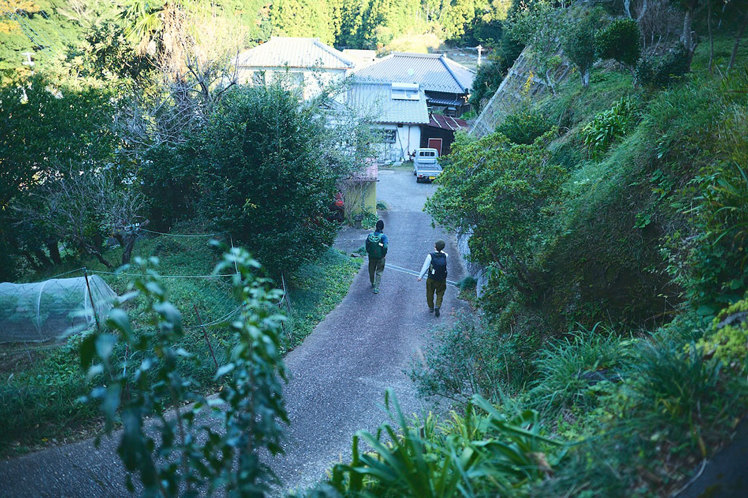 山道への入り口は、集落の入り口に建つ車庫の横に見つけることができた。そこから後ろを振り返ると、老爺が少し離れたところから僕たちを心配して見守ってくれている。手を振ると、腕を輪っかにして正解であることの合図を送ってくれるのであった。