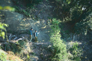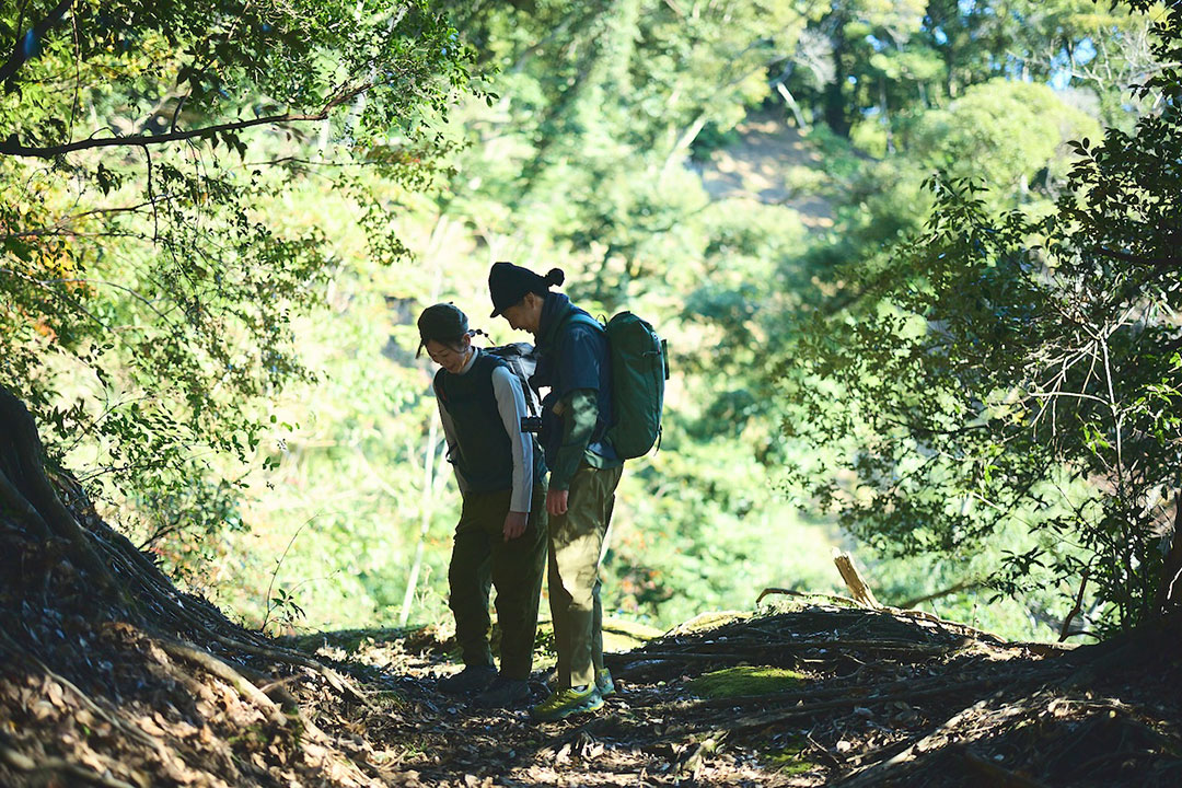 房総半島の山岳地形は、とても複雑だ。小さな山や谷がいくつも重なりあい、登山者を悩ませる。尾根筋から切れ落ちたところには広場のようになった場所を見つけることができるけれど、そうしたところに“隠田”が隠されているのでないか? 僕たちは、そんな期待を抱きながら徐々に標高を上げていくのであった。