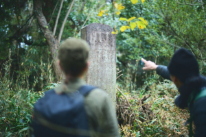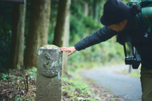 本村集落から鹿野山神野寺まで、江戸の旅人たちによって踏み固められた山道がある。僕たちは、そんな話を聞いてここまでやってきた。その入り口を探していると、道の向こうからひとりの老爺が歩いてきた。登山口の場所を尋ね、集落の昔話についても少し話を聞いてみた。すると、それまで硬い表情で口を閉じていた彼は、表情を和らげて饒舌に話しはじめる。
