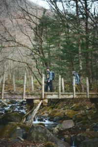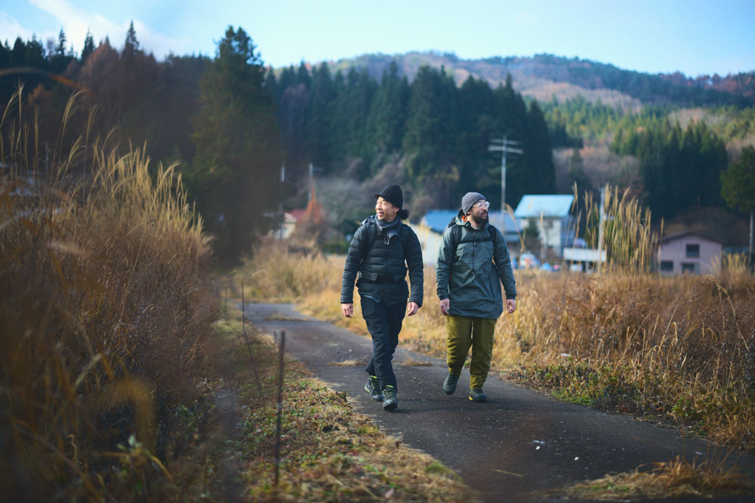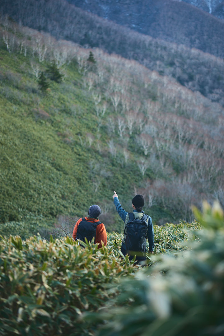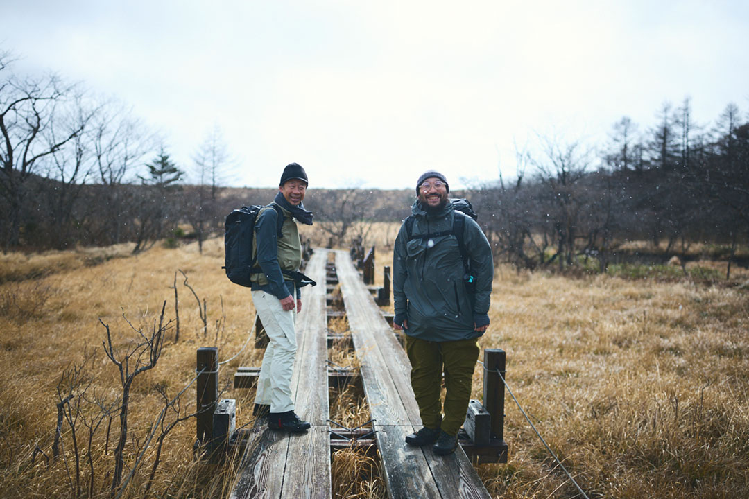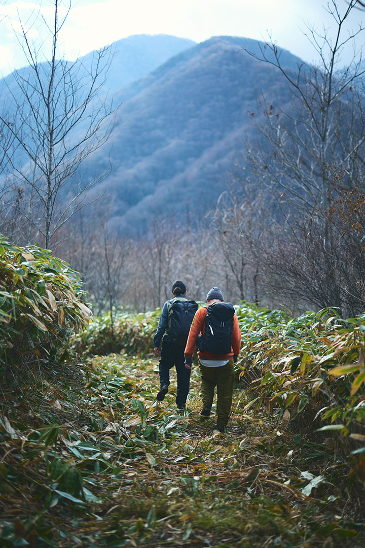 大峠からは、尾根道を越えて、谷間を流れる渓流を渡りながら約1時間30分。今宵の宿とした三斗小屋温泉の「大黒屋」へと到着する。木戸をガラガラ、ゴロゴロッと開くと、そこで山小屋の6代目当主となる高根沢春樹さんが満面の笑顔で出迎えてくれるのであった。