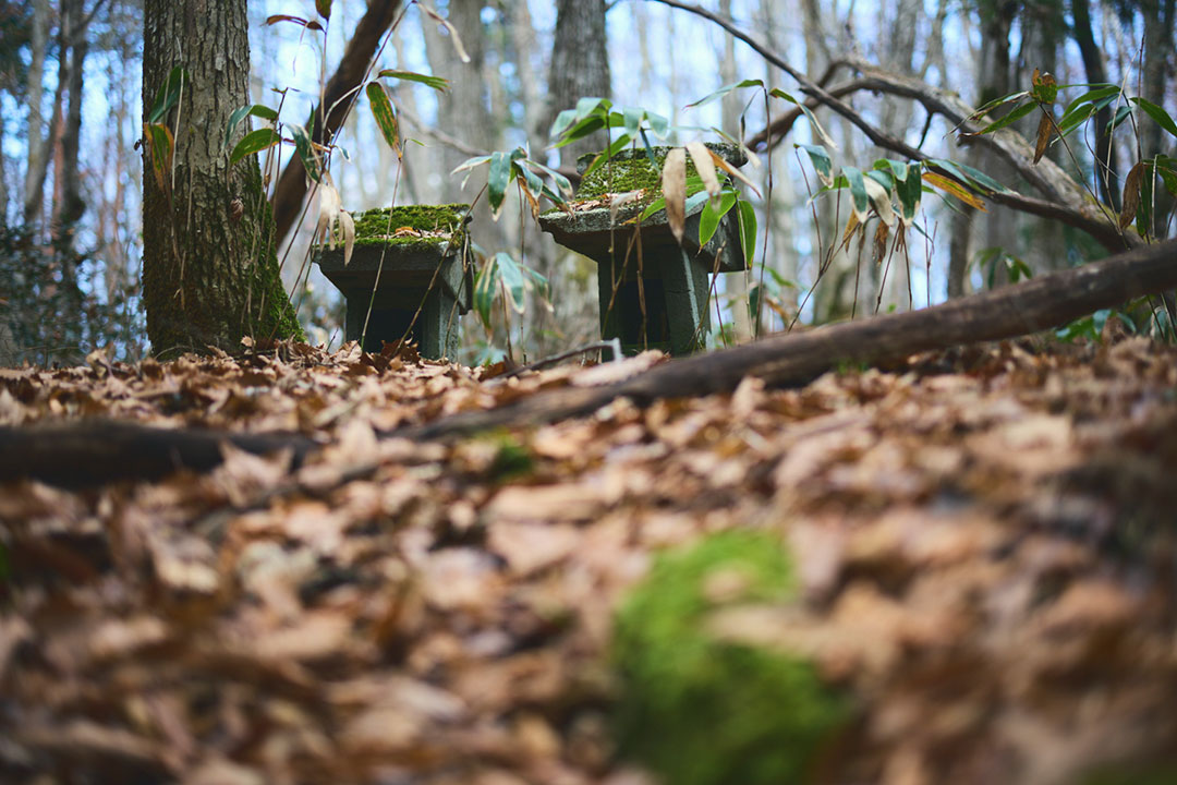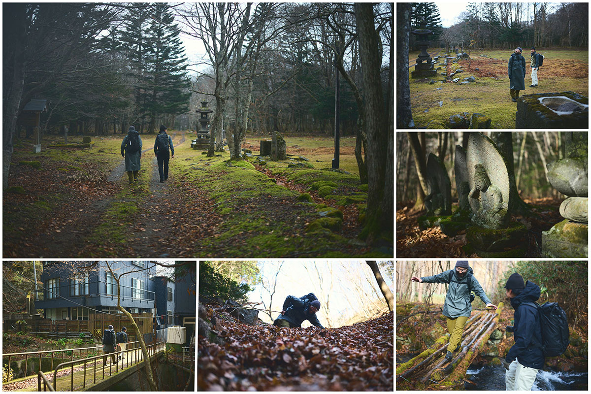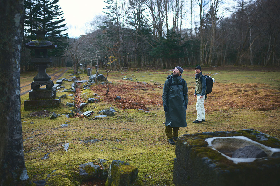 大黒屋を出発すると、約1時間後。山道が林道となる。目の前の景色が開けてきて、まっさらな平地に、常夜灯や石仏、井戸の跡などが残された三斗小屋宿跡地に到着する。ここには会津中街道の宿場街が形成され、1893(明治26)年になると銅山が開かれた。三斗小屋温泉へと向かう登山基地としても発展するとともに、茶臼岳のロープウェイ山麓駅へと向かう道は、一帯で採られていた硫黄を運ぶ道として牛車が往来していたという。