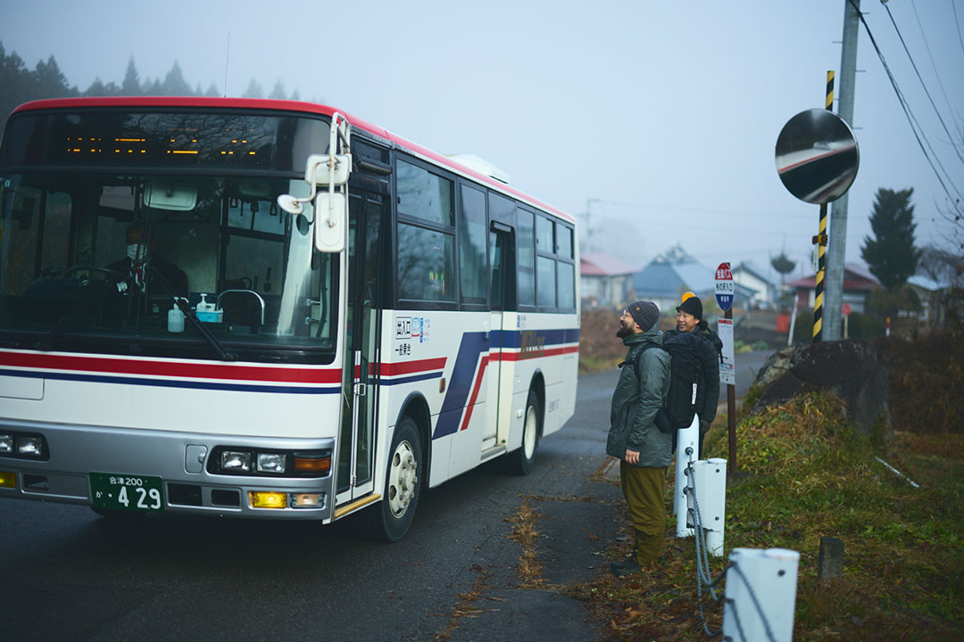 会津若松駅から、奥鬼怒川行きの始発電車に揺られること約40分。風情のある駅舎が印象的な会津下郷駅に降りて、まもなくすると駅前広場に駐まっていたバスの出発時刻がやってきた。