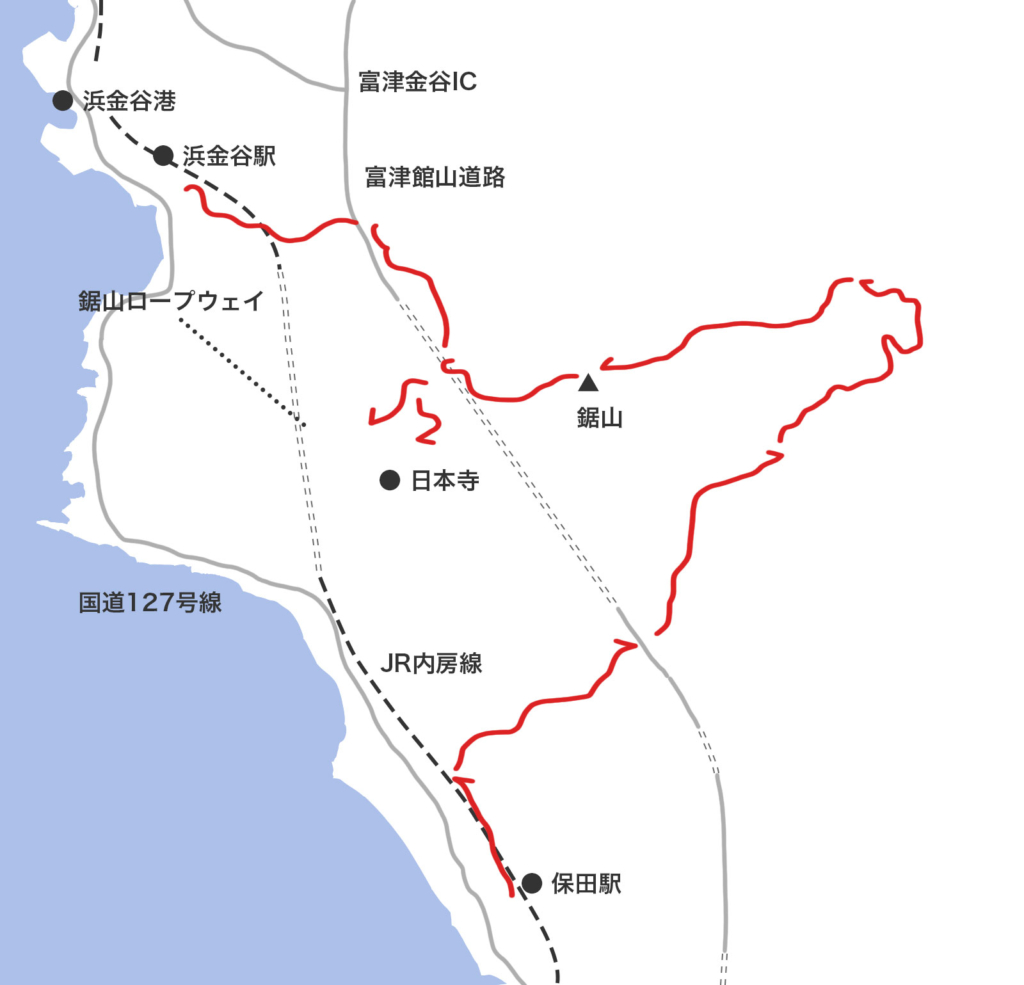 ACCESS & OUT/今回は、JR内房線の保田駅を出発して、裏鋸と呼ばれる登山口へと向かった。帰路は、鋸山から車力道沿いに下って内房線の浜金谷駅へと歩いた。下山後は、周辺の食堂などで肉厚の「アジフライ」などを堪能することをすすめたい。