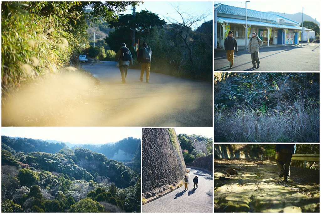 出発地点としたJR内房線の保田駅を出発すると、僕たちは民家が建ちならぶ舗装路をゆっくりと、ゆっくりと歩いていった。線路の向こう側に鋸山から続く稜線が伸びており、真っ白な鋸山ロープウェーの山頂駅を森のなかに見つけた。
