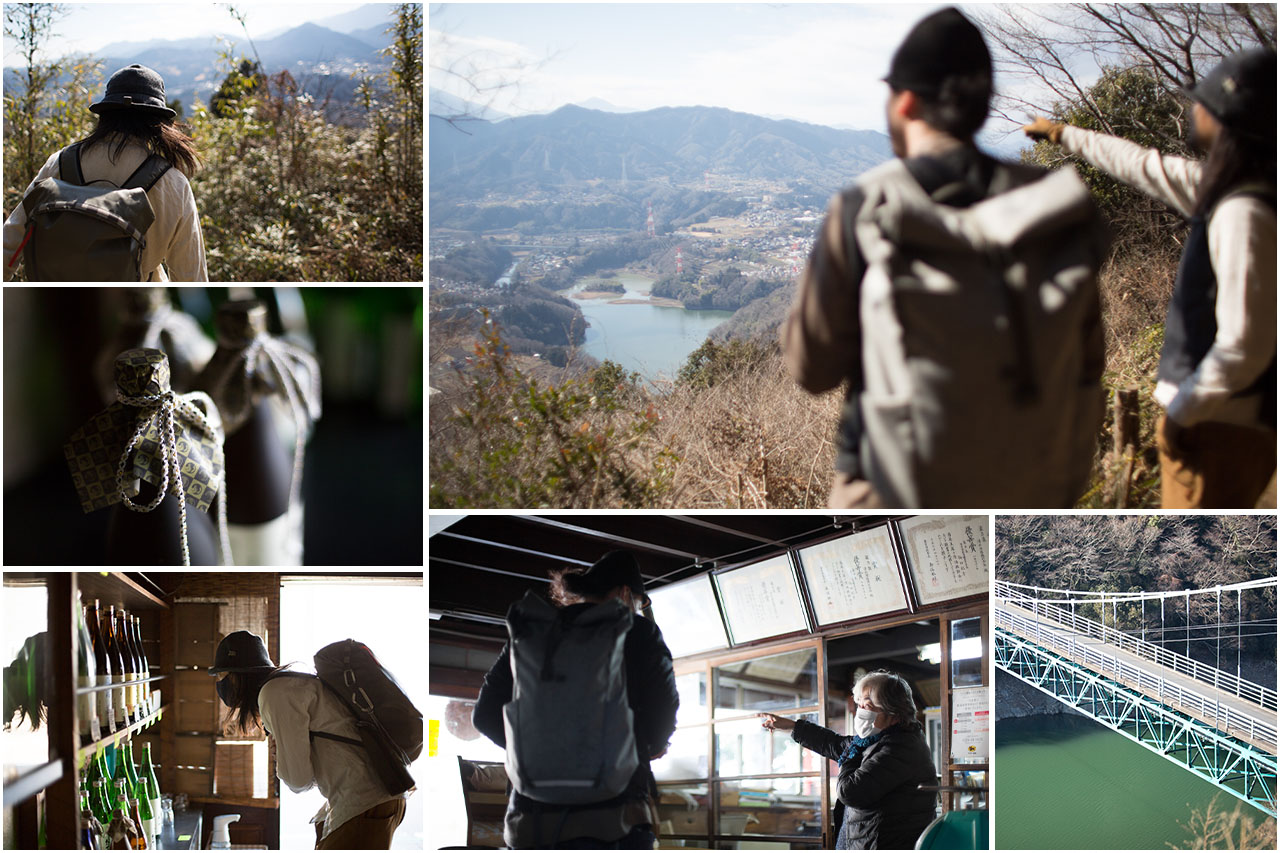 さらに集落を抜けていき、JRと京王線の橋本駅へと向かうバス停へと到着した。帰りのバスが来る前に、日本酒をひと瓶買っていこうと向かいにある酒蔵「清水酒造」に立ち寄ることにしよう。話しかけた女将さんとの話題は、酒蔵の歴史について。そして、いま僕たちが歩いてきた名手へと降りる山道についてであった。