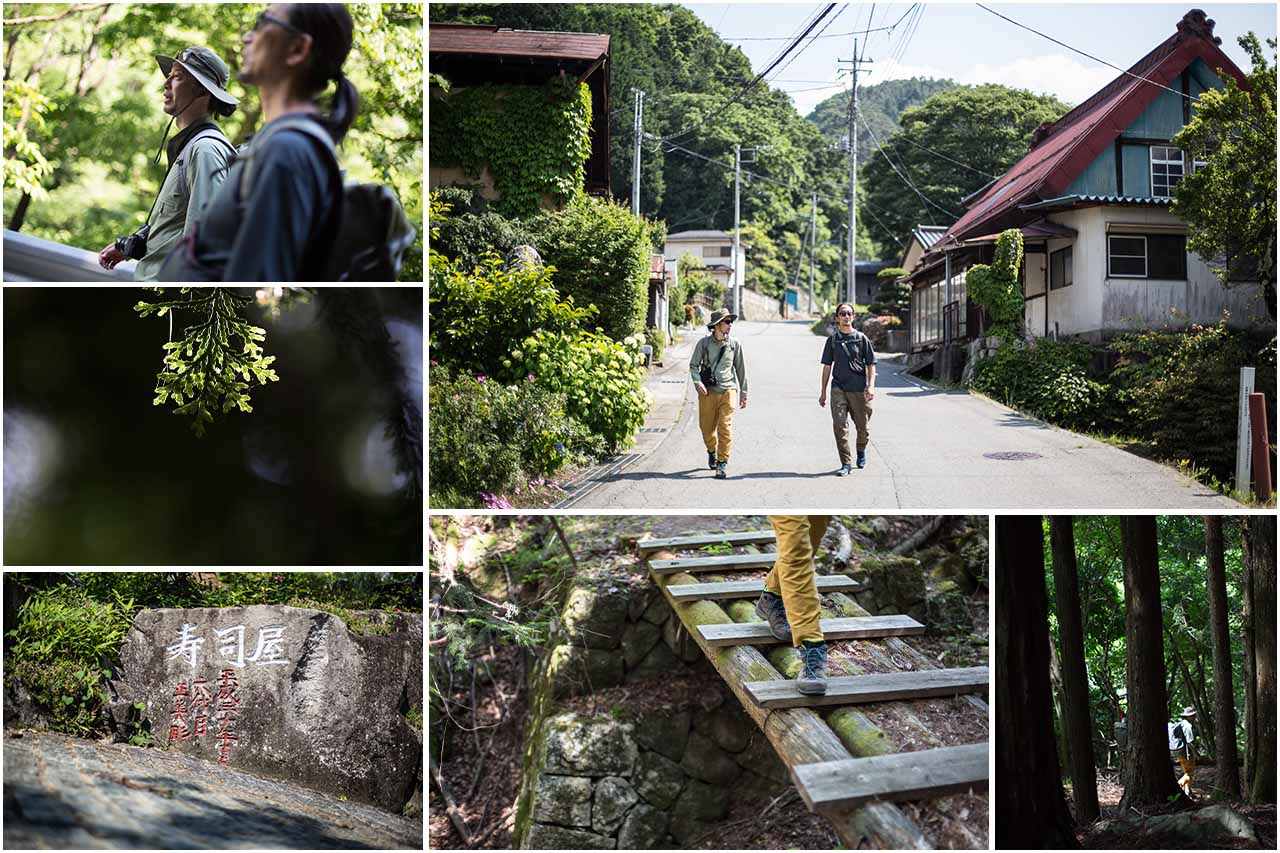 江戸時代の面影をいまも残す集落の入り口には、屋号で呼びあった時代の絵地図が置かれていて、賑わいをみせた当時の景色を想像させられる。